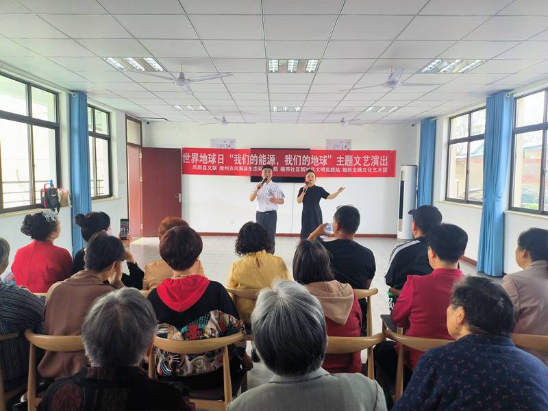 在第56个世界地球日来临之际,为增强社区居民的环保意识,倡导绿色低碳生活方式,营造爱护地球、珍惜资源的良好氛围,4月19日,凤阳县文联联合县生态环境分局在府城镇楼西社区养老服务中心开展了“我们的能源 我们的地球”主题文艺演出活动,活动由府城镇楼西社区新时代文明实践站协办,县鼓跃龙腾文化艺术团文艺志愿服务队承办。