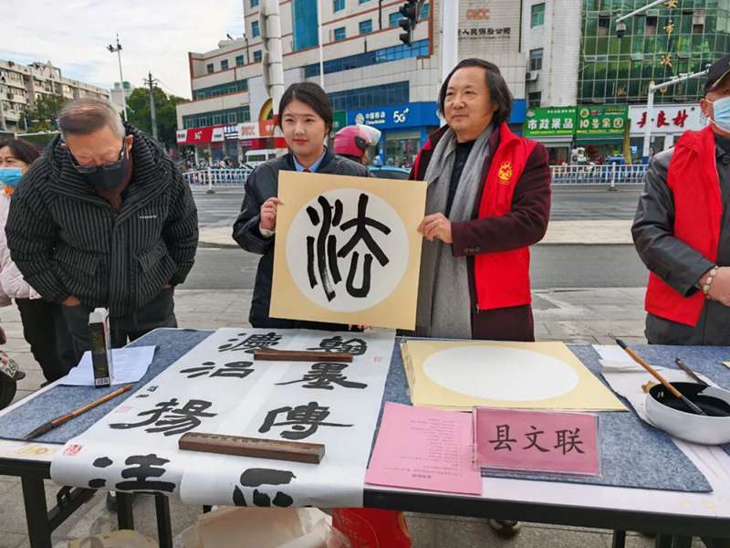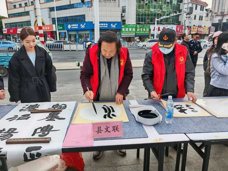 12月4日,正值第十二个“国家宪法日”,来安县白云商厦广场上人头攒动,县“12.4”国家宪法宣传日集中宣传活动正在这里举行。县文联组织文艺志愿者,将传统书法艺术与宪法精神巧妙融合,以笔墨为桥梁,为市民送上了一场富有文化底蕴的法治“盛宴”。