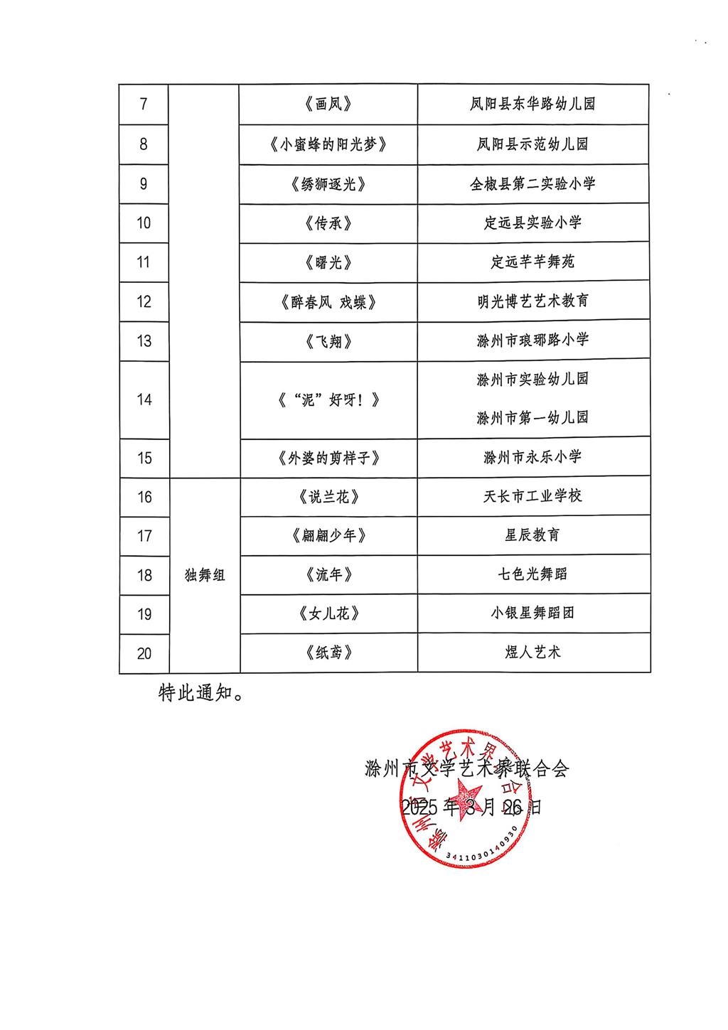 关于滁州市第五届青少儿舞蹈大赛节目入围的公示