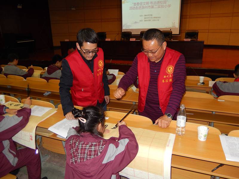 为进一步弘扬中华传统文化,丰富校园文化,提高学生的审美能力和文化素养,11月18日,市文联文艺志愿者协会组织书法名家来到滁州市第二实验小学,开展“墨香促文明 书法进校园”活动。