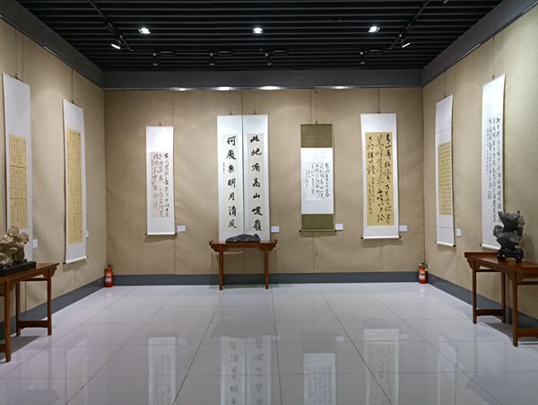 此次展览共展出袁少厚近年创作的楹联二十余幅,学员作品四十余幅,真、行、草、隶、篆五体兼涉,突出行书。或清秀雅逸,或潇洒豪放,或古扑浑厚,具形神兼备,各气象万干,有斗方、条幅、扇面、中堂等各种形式。