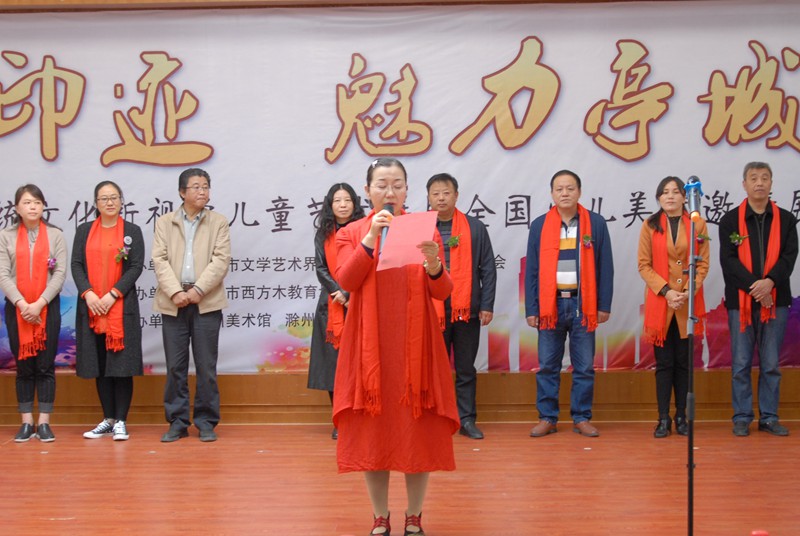 徐红在致辞中指出,滁州是一个美丽而神奇的地方,历史悠久,文化灿烂,人杰地灵,资源富集。滁州的文化艺术源远流长,民俗文化独树一帜。滁州的书画艺术根植于这片厚土,有着深厚的文化积淀和广泛的群众基础,艺术氛围浓厚。滁州的青少儿艺术文化建设也取得了丰硕的成果。来自省内外众多知名艺术学校佳作的参展,给滁州的艺术教育提供了难得的学习机会,增进了了解,扩大了交流,为艺术展的成功举办增添了光彩。