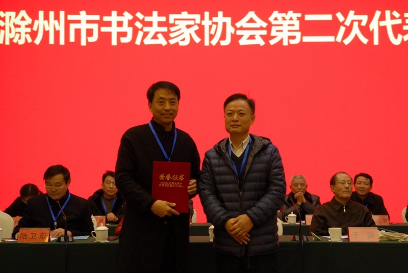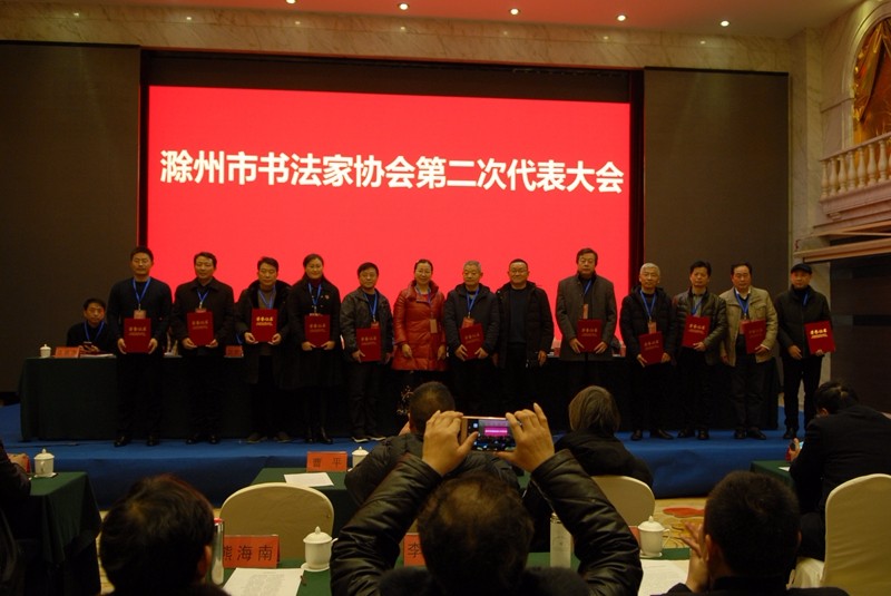 12月20日至21日,滁州市书法家协会第二次代表大会在滁州召开。滁州市委常委、宣传部长李树到会祝贺并发表讲话。滁州市委宣传部常务副部长、市文联党组书记、主席周全教,市文联全体同志,各县(市、区)文联负责同志,协会代表等110多人参加会议,会议由市文联党组成员、副主席徐红主持。滁州市书协副主席江祖耀宣读了兄弟地市文联发来的贺信。