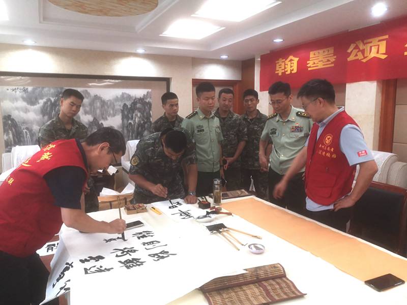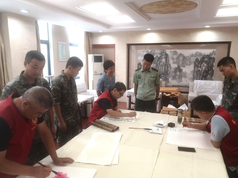 为庆祝中国人民解放军建军98周年,弘扬拥军优属光荣传统,8月1日上午,市文联党组成员、副主席王玉荣带领文艺志愿者前往武警滁州支队,开展“翰墨颂盛世 护盾铸忠诚”书画拥军慰问活动。