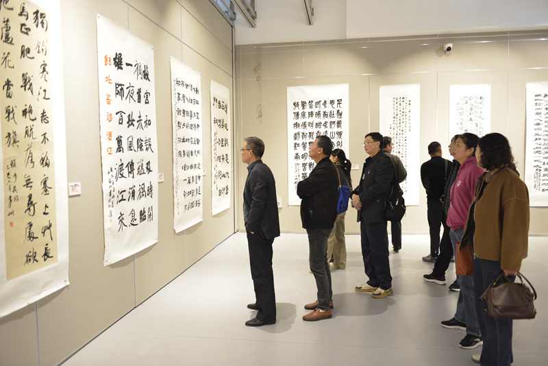 内蒙古自治区文联副主席、内蒙古书法家协会主席、秘书长李力,内蒙古书法家协会副主席包国庆、白玉林、刘伟、梁能伟,安徽省书法家协会秘书长程多林,安徽省书法家协会副主席王涛,中共滁州市委宣传部副部长赵文霞,滁州市文联党组书记、主席张毅,党组成员、副主席王玉荣与皖蒙两地书法家一起参观展览。