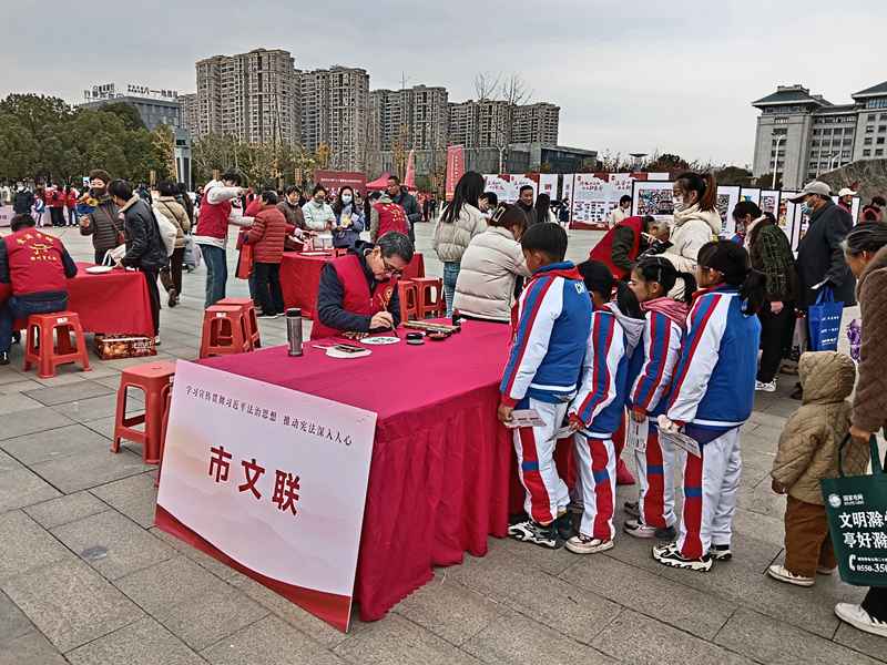 12日4日上午,2025年滁州市“宪法宣传周”宣传活动在农歌会广场启动,市文联党组书记、主席张毅带领书法志愿者参与活动,用艺术形式诠释宪法精神。