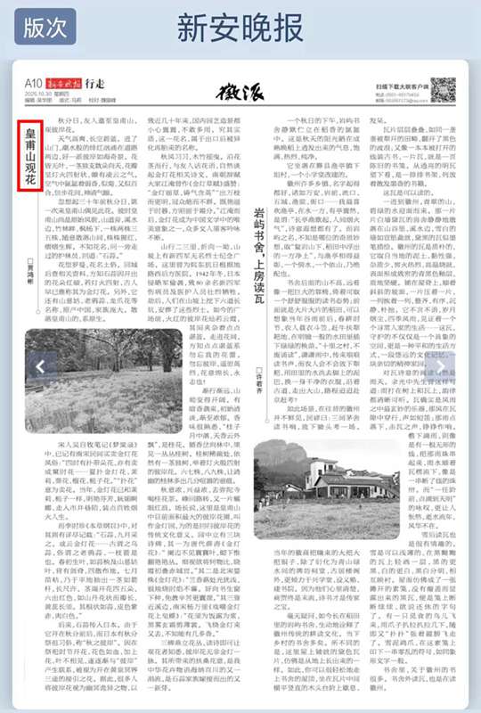 秋意浓,兴益浓,去弥陀寺喝桂花茶。峰回路转,又一片耀眼红浪。场长说,这里是皇甫山中目前面积最大的彼岸花圃,叫作金灯园,为的是回归彼岸花的传统文化意义。园中立有三块诗碑,其一为唐代薛涛《金灯花》:“阑边不见蘘蘘叶,砌下惟翻艳艳丛。细视欲将何物比,晓霞初叠赤城宫。”其二是北宋晏殊《金灯花》:“兰香爇处光犹浅,银烛烧时焰不馨。好向书生窗下种,免教辛苦更囊萤。”其三靠近溪边,南宋杨万里《戏嘲金灯花上皂蝶》:“花须为饭露为浆,黑雾玄霜剪薄裳。飞绕金灯来又去,不知能有几多香。”