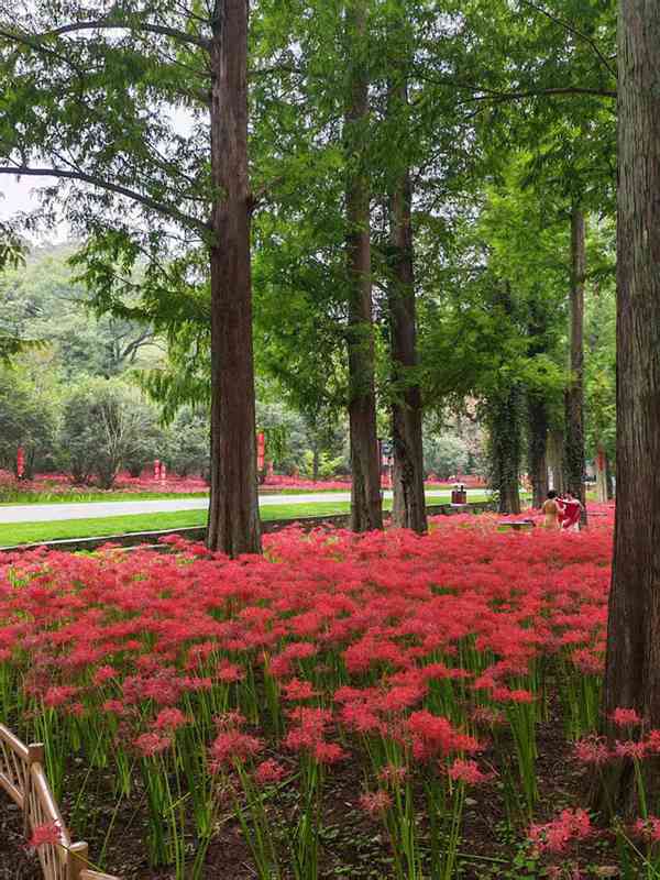 三碑鼎立花丛,读诗即可让观花者知悉,彼岸花无非金灯一脉。其所带来的扶桑花意,是我中华花卉物语海纳百川的又一涓流,是石蒜家族嫁接而出的又一新芽。