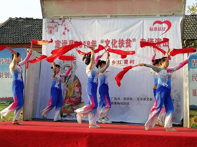 为助力全县脱贫摘帽攻坚战,近日,定远县文联联合县直有关部门,组织县曲雅黄梅戏剧团、新时代歌舞团等文艺协会团体,精心排练出舞蹈《中国道路》、黄梅戏《精准扶贫》、相声《一个都不能少》、歌舞《我的中国梦》《庆丰收》、快板《文明创建树新风》等二十多部文艺节目,送到全县17个重点贫困村扶贫工作一线,为当地干部群众及扶贫工作队的队员们送去一亏场场精彩的文艺演出,受到广大干群的一致好评。