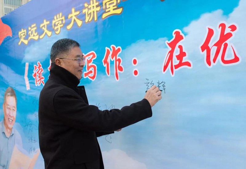 讲座结束后,许辉向现场部分听众签名赠书,勉励定远文学艺术爱好者要不忘初心,写好“定文章”,进一步打造出“定远文学”的新气象。另外,部分文学爱好者及英华中学师生代表现场朗诵了许辉的诗歌散文。