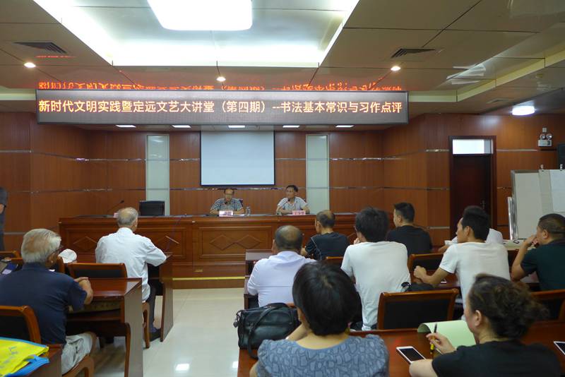 为贯彻落实习近平总书记关于文艺工作的重要讲话精神,进一步提升全县书法文艺创作水平,7月14日下午,定远县文联、县文明办主办,定远县书协承办的新时代文明实践暨定远文艺大讲堂(第四期)——书法基本常识与习作点评活动,在定远大剧院县新时代文明实践中心举办。