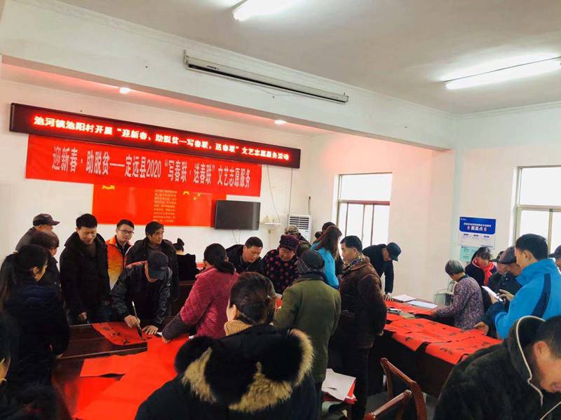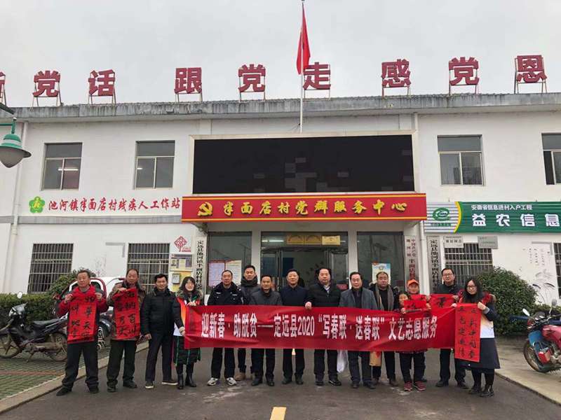 为深入贯彻落实新时代文明实践活动相关要求,为基层特别是困难群众送去欢乐、祥和、喜庆,1月10日上午,定远县文联联合县文明办、县书法家协会,来到定远县池河镇半面店村、池阳村,启动2020“迎新春·助脱贫——写春联、送春联”文艺志愿服务活动。