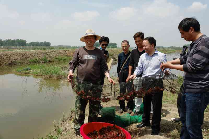 蒋集镇庆文种养合作社的领头人是村民陶庆文。当小分队来到他的小龙虾及家禽养殖基地时,陶庆文拉着采风队员的手笑哈哈的说:“今天早上捕捞的300多斤小龙虾刚被合肥来的客商抢购一空。因无污染、品质好,我这里的小龙虾已卖到20多元一斤,行情非常的好。”接着又指向另一处塘面说:“这10000多只麻鸭是我们村民合作社今年养殖的第一批家禽,目前长势非常好,全程绿色生态养殖,8月份出栏一定会卖个好价钱,今年村民的增收目标大有保障了!”