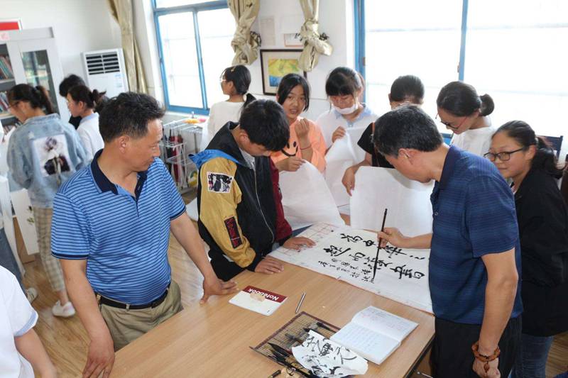 活动现场,一墨一砚一宣纸,书画老师们挥毫书诗文经典,泼墨绘大美定远,现场创作并赠送的精美书画作品受到同学们的纷纷点赞。县美术家协会穆守松主席专门为同学们准备的《青少年学书法的意义》专题讲座,从执笔方法、运笔方法,再到基本笔画的写法,惟妙惟肖的讲解和示范把同学们带到了书法艺术的美好世界。通过此次“送艺术进校园”志愿帮扶活动,同学们对祖国优秀传统文化的兴趣更加浓厚,学校文化氛围和内涵得到有效提升。
