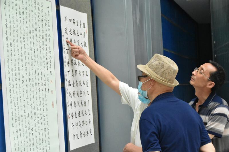 展览现场气氛轻松活跃,前来观展的我县老书法文艺家们与获奖作者进行了深入交流,并对入展作品逐一进行了点评,使大家进一步了明确了今后创作的努力方向。