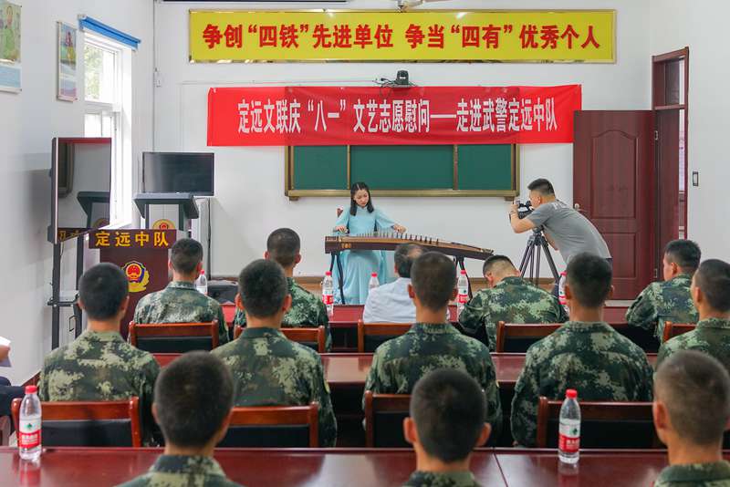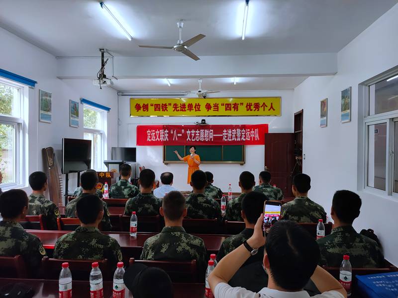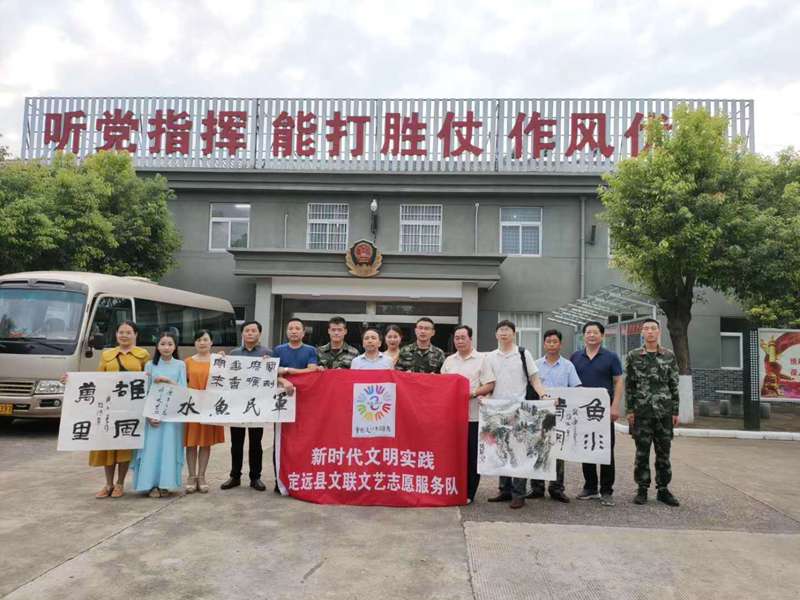 7月30日下午,在“八一”建军节来临之际,定远县文联文艺志愿服务队赴武警定远中队开展慰问演出,与中队官兵共叙军民鱼水情。