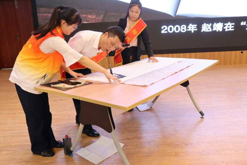 定远县文联组织县音乐、书法、舞蹈、诗词等协会精心排练的歌曲《好人在身边》以及原创的舞蹈《疫路有你》、诗朗诵《人间和天堂的对白》等文艺节目不断点燃观众的热情。“中国好人”、全国自强模范、县书法家协会副主席赵靖口书的“厚德载物”更是将文艺演出推向上了高潮。