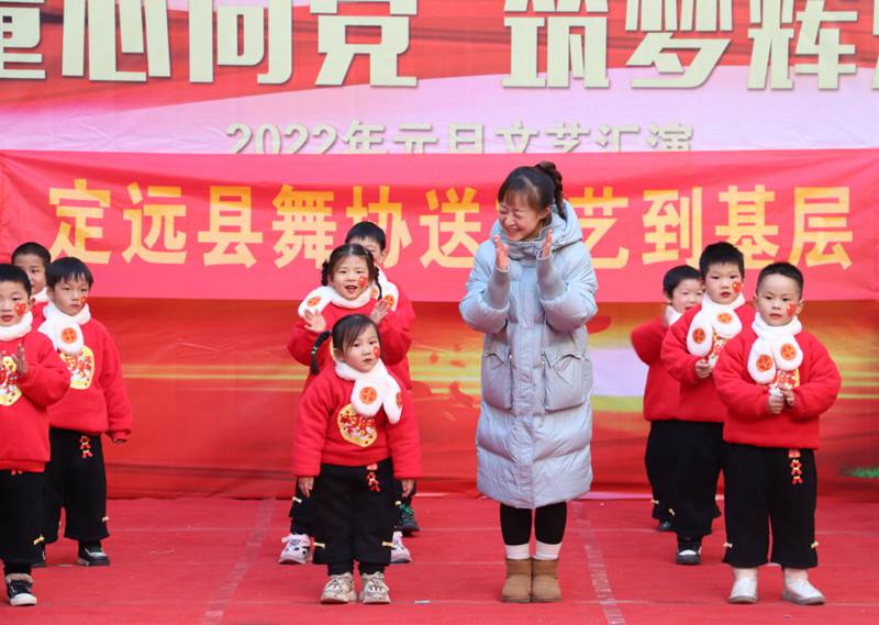 在2022年新春佳节到来之际,定远县舞蹈家协会文艺志愿服务小分队分别来到范岗乡幼儿园和南店小学开展“送文艺·送温暖”进基层活动。参加文艺志愿服务的舞蹈老师们手把手教授孩子们舞蹈技艺,和孩子们一起做精彩的律动游戏互动,为孩子们带来幼儿操作礼盒和故事绘本等新年礼物,并与学校艺体老师开展文艺教学工作交流。