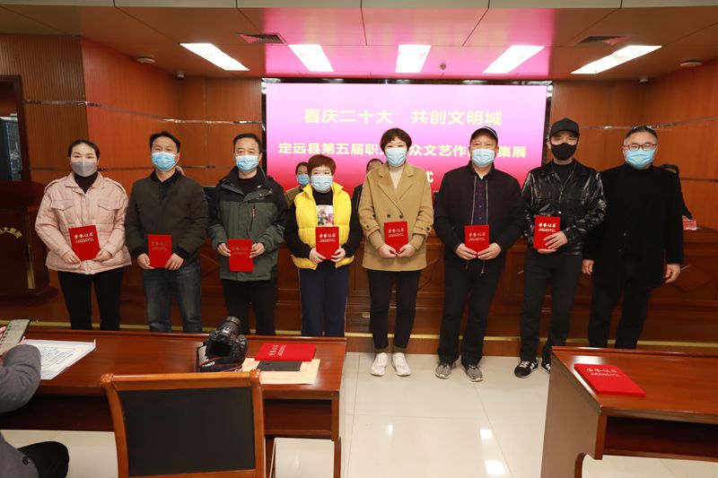 为深入学习贯彻党的二十大精神,助力争创省级文明城市,11月25日上午,喜庆二十大 共创文明城——定远县第五届职工群众原创文艺作品征集展开展仪式在定远大剧院成功举办。县委宣传部副部长、县文明办主任黄家祝到会致辞并宣布开展,县委宣传部副部长陆宁及县文联、县文明办、县总工会、县妇联、县融媒体中心等主承办单位负责人为获奖作者颁奖。县作家协会、县摄影家协会、县书法家协会、县美术家协会负责人参加开幕式。县文联负责人宣读定远县第五届职工群众原创文艺作品征集展作品获奖名单。
