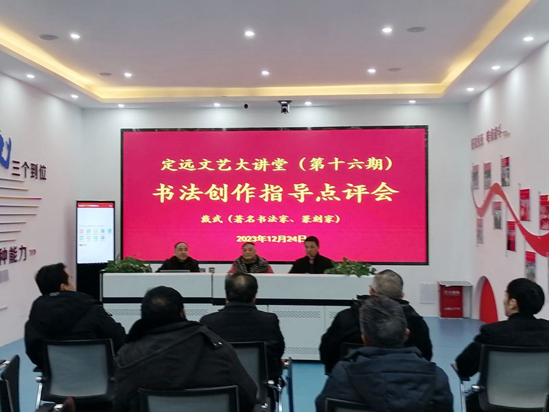 为进一步弘扬和传承中华优秀传统文化,提升定远县书法、篆刻创作水平,12月24日,由定远县委宣传部指导、县文联主办、县书法家协会承办的“定远文艺大讲堂(第十六期)——书法创作指导点评会”在县新时代文明实践中心举行。书法家戴武应邀授课和点评。县委宣传部常务副部长江永龙到会讲话。