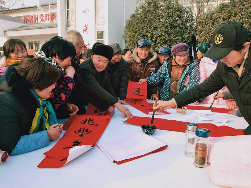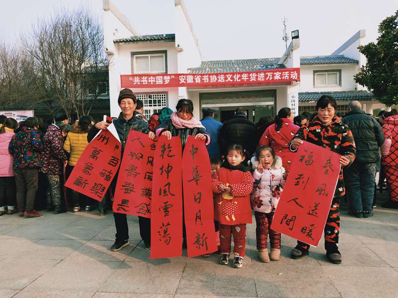 张灯结彩辞旧岁,名家挥毫迎新春。为深入学习贯彻党的十九大精神,弘扬先进文化,推进乡村振兴,1月21日,“共书中国梦”安徽省书协送文化年货进万家活动走进小岗,为父老乡亲送福送春联,把对凤阳人民的关心关爱和祝福表达在春联里、融入在笔墨中,为凤阳的发展增添文化力量。