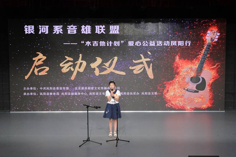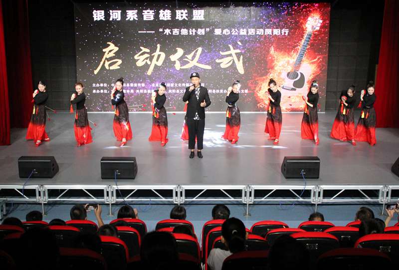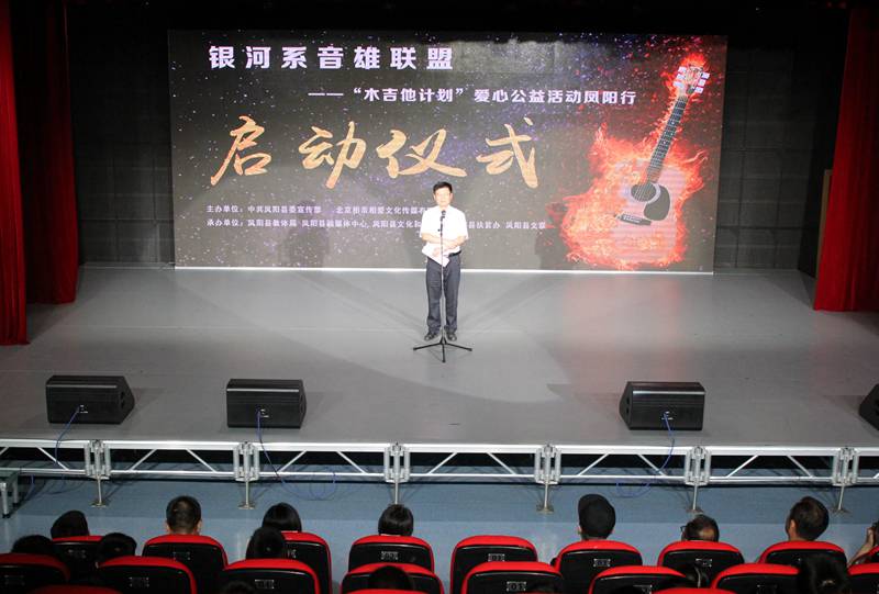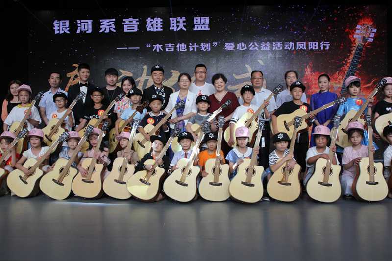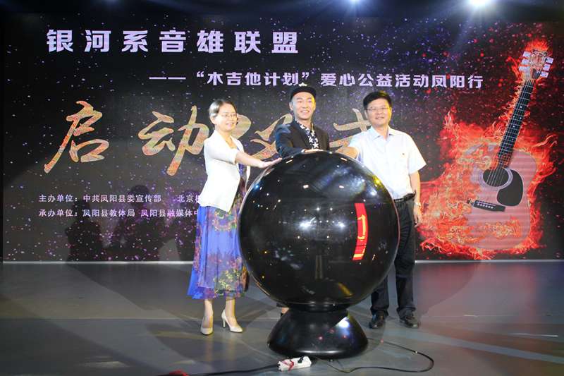 活动现场,县领导及嘉宾共同按动启动球,正式启动“银河系音雄联盟”木吉他爱心计划公益凤阳行活动。