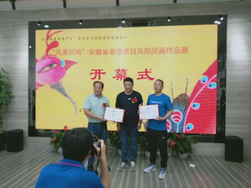 近日,风清凤鸣——安徽非遗项目凤阳凤画作品展在合肥市包河区文化艺术中心开幕,来自凤阳县的各级凤画传承人以及主办、协办单位领导嘉宾出席了开幕式。开幕式后,来自各方面的专家学者在包河区文化艺术中心召开了“凤阳凤画传承与创新研讨会”。