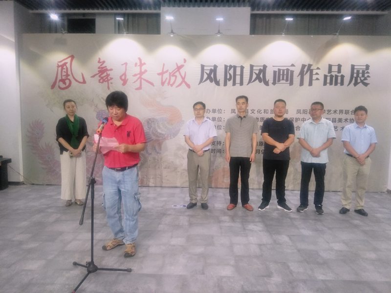 开幕式上,凤阳县非遗保护中心负责人介绍了凤阳凤画的起源与发展、保护与传承情况;他表示,凤阳凤画起源于明朝,在600多年的发展历史中形成了一套独特的传统艺术风格,2006年入选首批安徽省非物质文化遗产。近年来,为了将凤阳这一文化名片展示好发扬好,非遗保护中心在当地积极开展凤画抢救性保护措施,让传承人走进社区、学校进行义务教学;在外不断地举办画展,让更多人了解凤画,支喜欢凤画。据悉,本次展览共展出凤画作品60余幅。