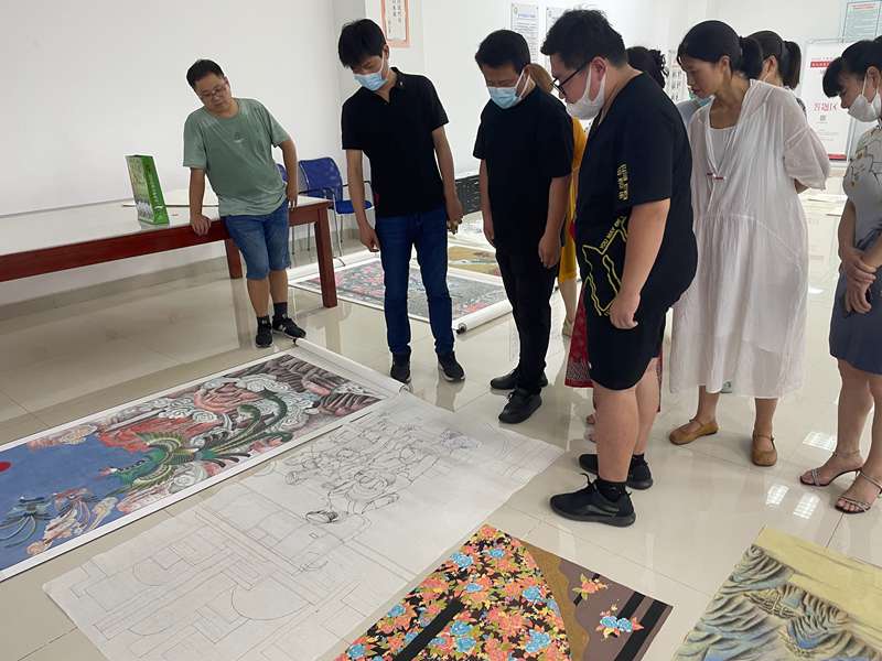 7月15日上午,为提高凤阳县的美术创作水平,帮助创作更多高质量的作品参加“喜迎党的二十大”为主题的各级各类美术展赛,滁州市美协副主席邓刚、丁玉璞来到凤阳县对县美协、凤阳凤画研究会会员近期创作的30余幅作品进行了现场指导。