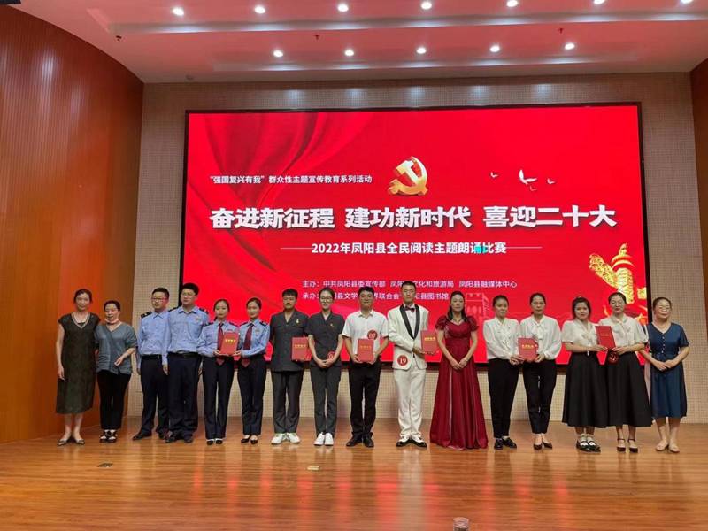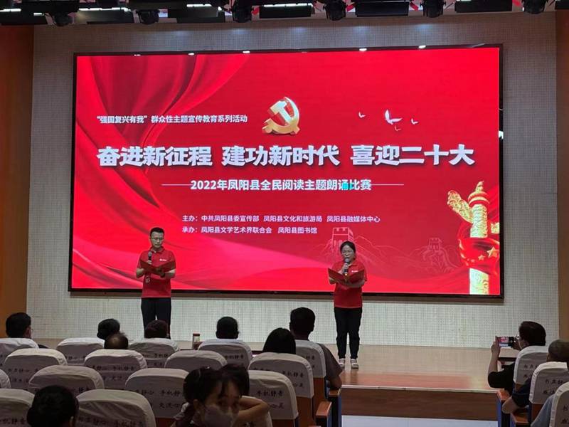 为着力引导凤阳县干部群众坚定不移听党话、感党恩、跟党走,以优异成绩迎接党的二十大胜利召开,7月27日下午,由中共凤阳县委宣传部、县文化和旅游局、县融媒体中心主办,县文学艺术界联合会和县图书馆承办的2022年凤阳县“奋进新征程 建功新时代 喜迎二十大”主题阅读朗诵比赛在凤阳县图书馆报告厅举办。