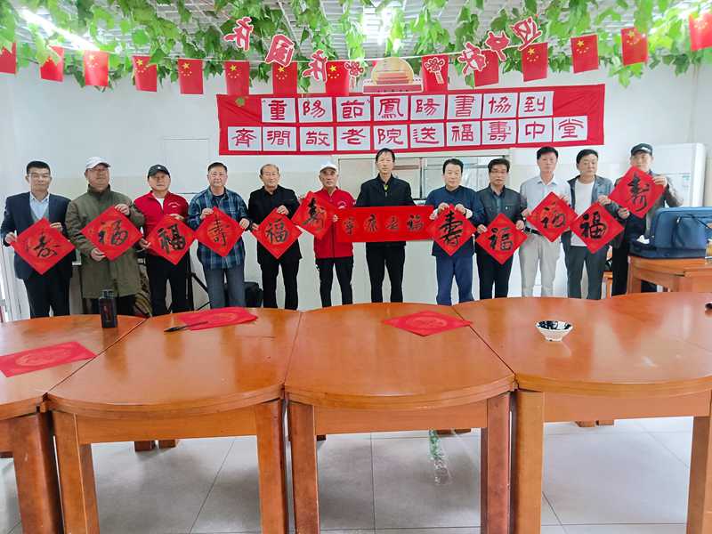 农历九月九日是中华民族的传统节日“重阳节”,也称“老人节”,在这个寓意长长久久的传统节日到来之际,凤阳县书法协会组织10多位文艺志愿者来到府城镇齐涧村敬老院,开展重阳节志愿服务活动,为敬老院的老人们送上“寿”字、“福”字。