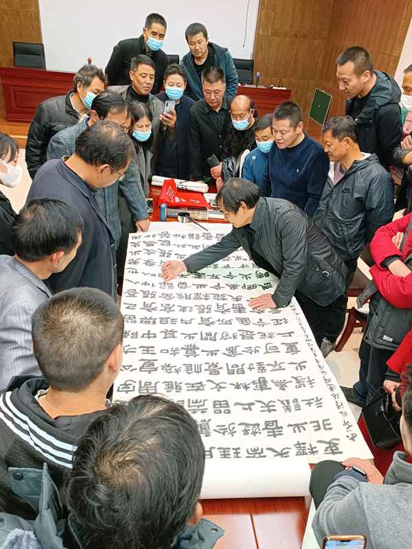随后,马老师亲自进行书法创作示范,一边书写一边讲授笔法和字法,从单个字到组字都作了十分细致的讲解。马老师的示范让在场会员对书法笔法有了更直观的感受,书法学习热情高涨,互相交流学习,分享经验。