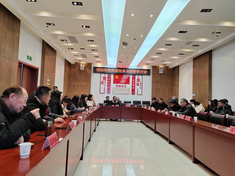 开幕式之后,在博物馆会议室举行了2023凤阳凤画传承与创新研讨会。会上,大家一致认为,凤阳凤画要与时俱进,在继承传统的基础上,提倡和追求思想性、艺术性相结合的新型凤画作品,让具有地方特色的民间艺术奇葩大放异彩,将凤阳凤画向前推进一步,更加发扬光大。