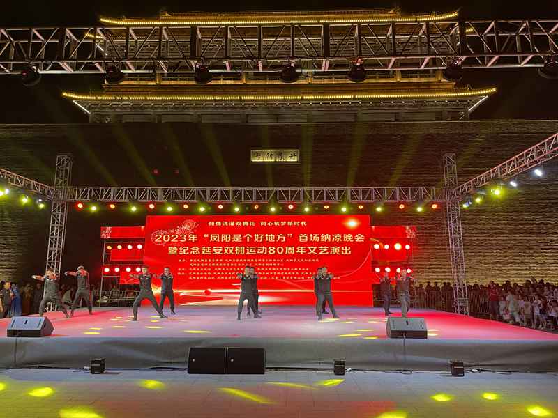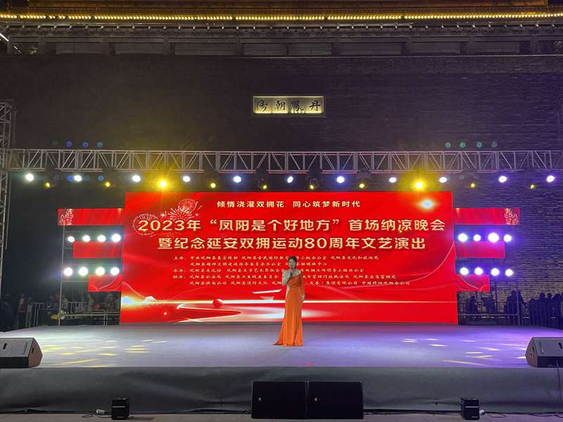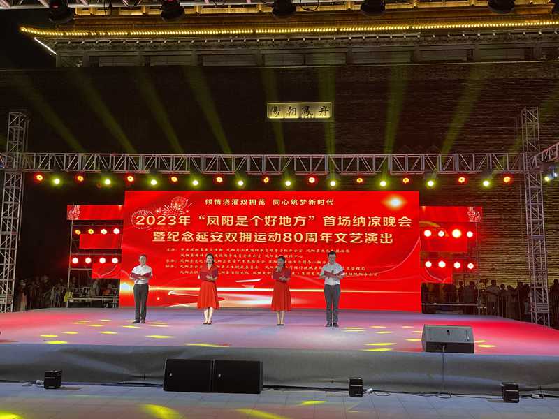 7月26日晚,由凤阳县文化馆、县文联、县双拥办共同承办的2023年“凤阳是个好地方”首场纳凉晚会暨纪念延安双拥运动80周年文艺晚会在钟楼广场举行。县委常委、宣传部长赵文霞,县人大常委会副主任高有才,副县长张艳,县政协副主席朱瑞与现场的观众朋友们欢聚一堂,共同观看演出。