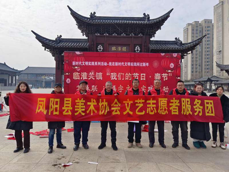 连日来,凤阳县美术协会文艺志愿者服务团先后前往西泉镇考东村、临淮镇文化广场、临淮镇淮滨新村小区开展写春联送春联志愿服务活动。活动现场,老师们挥毫泼墨,将新年祝福寄托在一幅幅风格多样、祝福满满的春联和“福”字中,既让群众感受到了中华优秀传统文化的魅力,也为即将到来的新春佳节增添了浓浓年味。