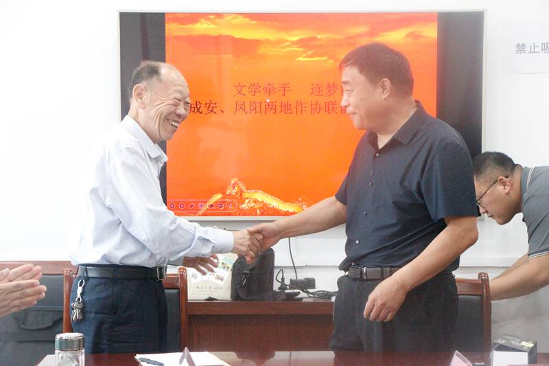 6月13日,安徽省凤阳县与河北省成安县两地作协在成安举行联谊结对签约仪式,为两地文学融合发展、深化合作搭建了更高平台,提供了更广阔空间。成安县委宣传部主要负责人到会致贺词。