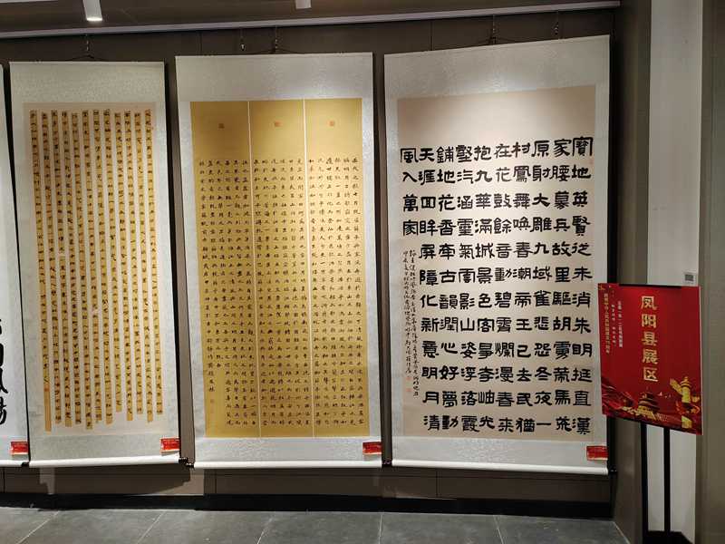 7月23日,“翰墨传情·相约龙城”五县(市)二区书画联展在萧县龙河艺术空间拉开帷幕。联展活动由萧县县委宣传部主办,县委人才工作局、县文学艺术界联合会承办,滁州市天长市和凤阳县、蚌埠市固镇县、阜阳市颍上县、亳州市谯城区、淮北市杜集区文联协办。凤阳县文联选送的16幅书画作品在联展上展出,获得广大书画艺术家和爱好者一致好评。