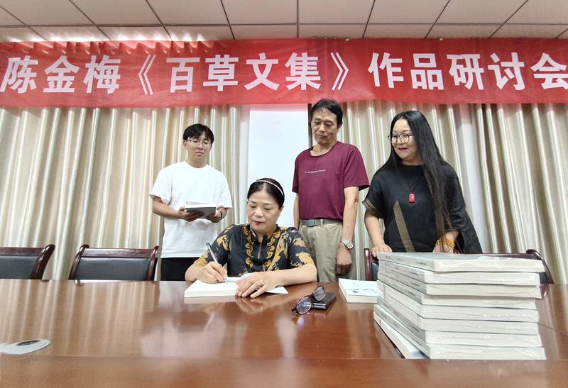 8月7日下午,凤阳作家陈金梅《百草文集》作品研讨会在县老年大学举行,活动由县委宣传部指导,县老年大学、县文联主办,县直相关部门负责人,县老年大学文学班师生代表,县作协主席团部分成员和文学爱好者参加研讨。