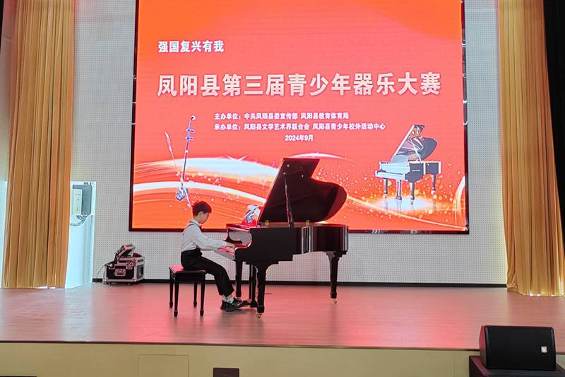 在中华人民共和国75周年华诞即将到来之际,9月28日,凤阳县举办“强国复兴有我”第三届青少年器乐大赛,比赛由县委宣传部、县教体局主办,县文联、县青少年校外活动中心承办,来自凤阳县110多名青少年音乐爱好者参加比赛。