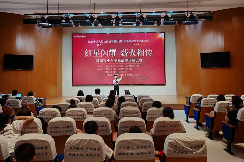 7月31日,凤阳县纪念中国人民抗日战争暨世界反法西斯战争胜利80周年“红星闪耀 薪火相传”青少年英雄故事讲解大赛决赛在县图书馆报告厅举行,活动由县退役军人事务局、县图书馆、县文联等单位共同举办,来自凤阳县30名小学生参加比赛。