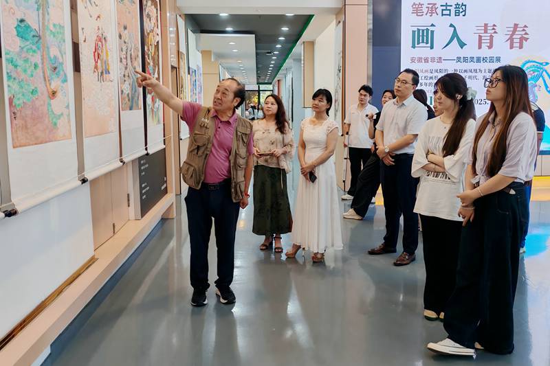 聚焦文化惠民,丰富群众精神文化生活。坚持文艺为民服务,常态化开展主题展演、志愿服务等活动。围绕纪念中国人民抗日战争暨世界反法西斯战争胜利80周年主题,组织开展征文、书画展、文艺演出等系列活动,弘扬爱国主义精神。在上海市、芜湖市等地成功举办省级非遗“凤阳凤画”主题展,提升地方文化品牌知名度。结合元旦、春节、七一、国庆等节庆日,开展师生书画展、朗诵比赛、专题文艺演出等活动10余场。深入开展文艺志愿服务,组织义务写春联,开展书法、文学、摄影、绘画等公益服务进社区、进校园、进乡村共50余场,惠及群众近万人次,有效丰富了基层文化供给。