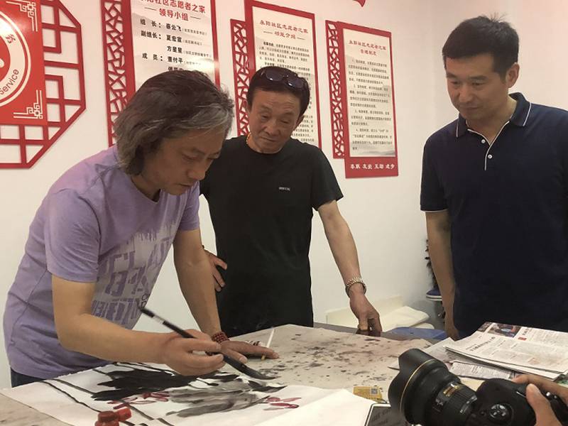 我县知名画家梁士军从苏州赶回来参加此次活动。