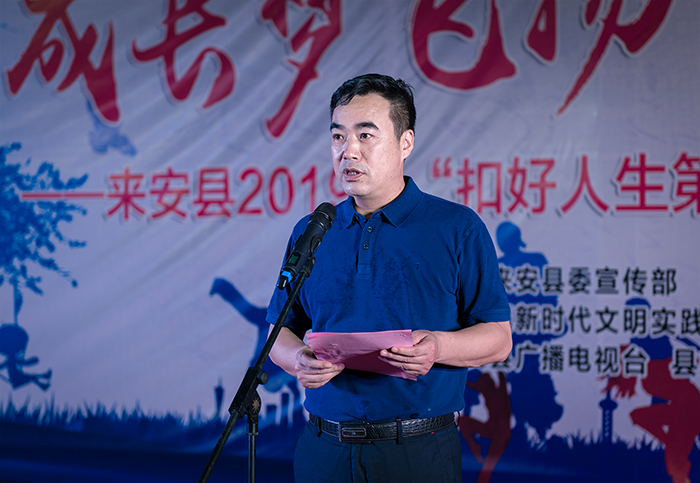 来安县委常委、宣传部长余爱军出席活动并讲话。他指出,新时代、新青年、新作为,作为新时代的青少年,不仅要学好科学文化知识,还应当牢固树立以爱国主义为核心的民族精神和以改革创新为核心的时代精神,以社会主义核心价值观为日常言行的行为标准,树立远大理想、热爱伟大祖国、担当时代责任、勇于砥砺奋斗、练就过硬本领、锤炼品德修为,时刻做好准备,襄盛伟大祖国、共建美好来安!