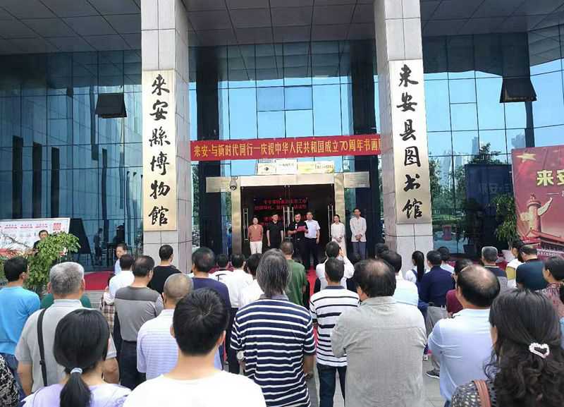 9月28日上午,由中共来安县委宣传部、县文联、县文旅局主办,县书法协会、美术协会承办“来安•与新时代同行——庆祝新中国成立70周年书画展”开幕式在县图书馆广场举行。省监狱管理局生活卫生处副处长项长明,市美术家协会副主席、秘书长曹培芹,市书法家协会主席范振海、县委常委宣传部长余爱军,县人大常委会副主任沈庆春,县政协副主席盛晓梅出席开幕式,并为书画展优秀作者颁发获奖证书。县直宣传口、文联所属文艺协会会员、老年大学学员、中小学生书法爱好者和市民群众等200余人参加了开幕式。