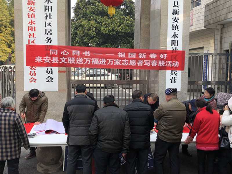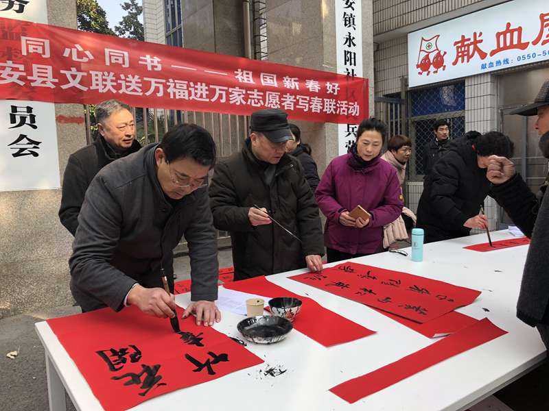 据了解,县文联多年来始终坚持开展送“文化年货”系列文化惠民活动,其中,“送春联”、“送福字”可以说是最接地气最受社会各界欢迎的“文化年货”。农历鼠年来临之际,为进一步活动拓展范围,让更多人受益,县文联结合新时代文明实践活动,除开展文艺演出进基层外,先后组织书法家志愿者们以“同心同书——祖国新春好”送万福进万家为主题,自带笔墨纸张进机关、进学校、进乡村、进企业、进社区等现场写春联、送春联、送福字。截止1月20日,送出春联、福字达1.2万余幅。此类活动受到了广大人民群众的积极称赞,不仅丰富了城乡群众文化生活,营造了欢乐祥和的节日氛围,而且让“年味儿”更具“文化味儿”。