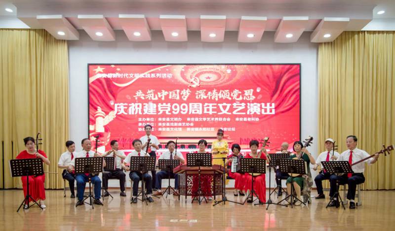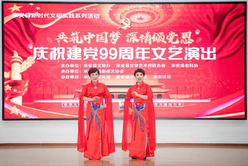 为深入贯彻落实习近平总书记关于文艺工作的重要讲话精神,打造来安县文联党支部“永阳之光”文艺活动品牌,来安县新时代文明实践系列活动“共筑中国梦 深情颂党恩”——庆祝建党99周年文艺演出于6月30日下午在永阳社区综合活动中心顺利举行。县人大常委会原副主任厉文英,县委宣传部副部长、县文明办主任邵德明,县老科协副会长储成荣、夏军,县文联主席王道琼等出席了此次活动。