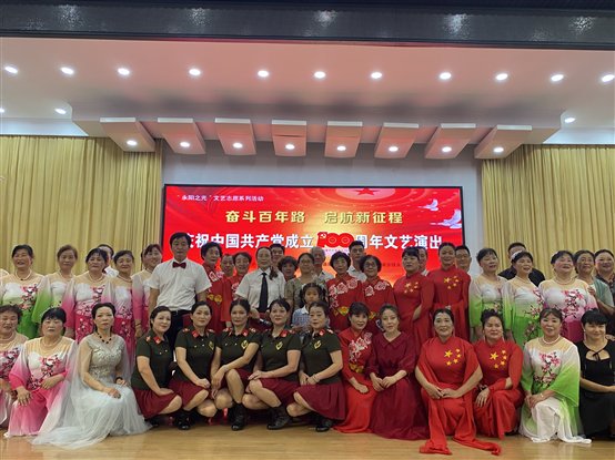 整场演出以歌颂党的百年辉煌、伟大成就为主线,演员们精彩呈现了京剧《唱支山歌给党听》、歌曲《颂歌献给亲爱的党》《北京的金山上》《母亲》《军人本色》《阳光路上》,萨克斯演奏《美丽的草原我的家》,舞蹈《东方红》《今天是你的生日,我的中国》《家和万事兴》,快板书《红船精神美名扬》等丰富多彩的文艺节目,最后在《没有共产党就没有新中国》的歌声中圆满结束。