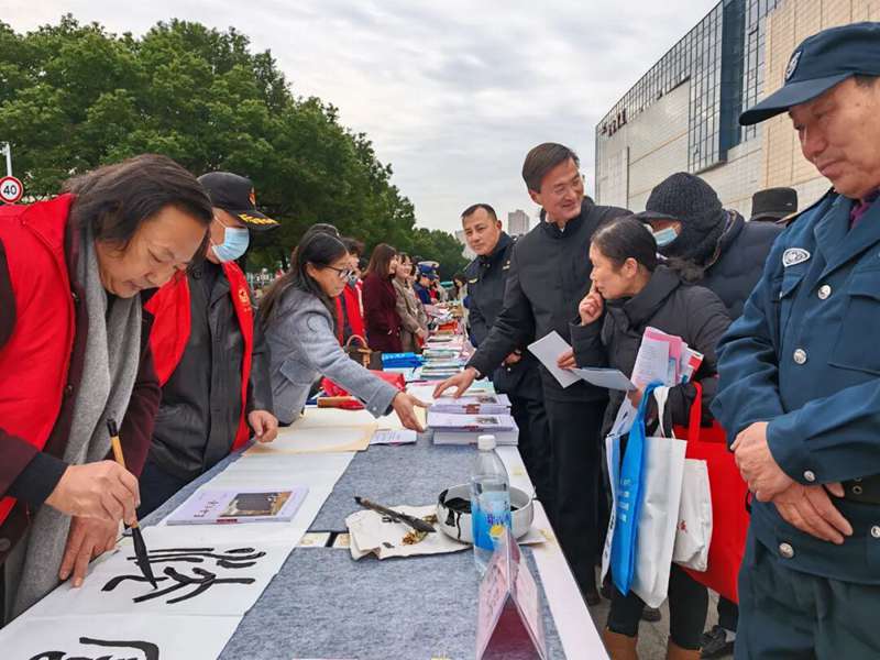 12月4日,正值第十二个“国家宪法日”,来安县白云商厦广场上人头攒动,县“12.4”国家宪法宣传日集中宣传活动正在这里举行。县文联组织文艺志愿者,将传统书法艺术与宪法精神巧妙融合,以笔墨为桥梁,为市民送上了一场富有文化底蕴的法治“盛宴”。