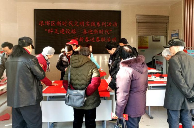 春节将至,为弘扬传统文化,丰富广大群众的精神文化生活,积极营造欢乐、喜庆、祥和的新春氛围,1月15 日至22日,琅琊区文联组织区书协开展新时代文明实践“迎新春 送春联”活动,30余名书法志愿者走进琅琊新区政务中心、建设路社区、高桥社区、胜利社区为居民义务写春联,送出真情的祝福。