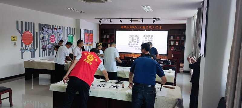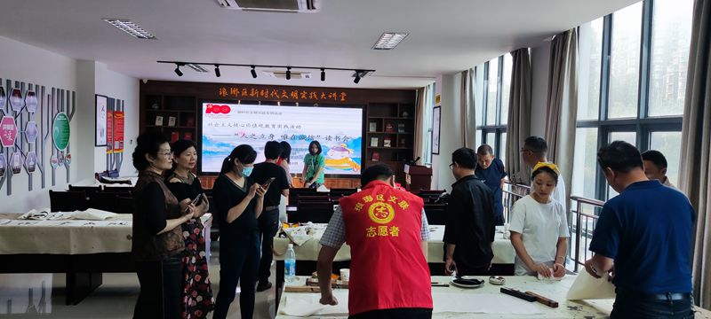 本次活动以“人之立身 唯在诚信”为主题,旨在以理论宣讲、读书分享、书写交流等群众喜闻乐见的形式,让书法艺术和爱国宣传有机结合,加深群众对习近平总书记“七一”重要讲话精神的理解和认识,感受生活的美好,共享祖国的荣光,推动社会主义核心价值观落地生根。